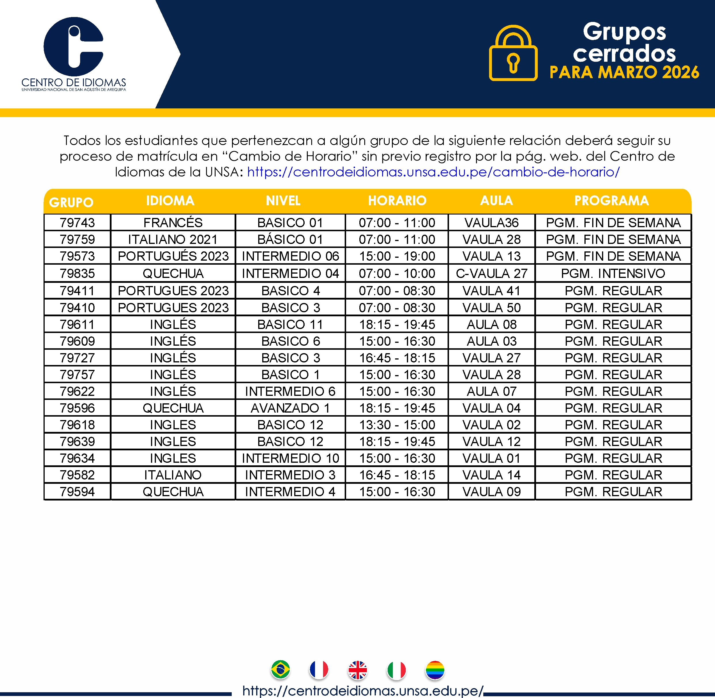 GRUPOS CERRADOS 2026